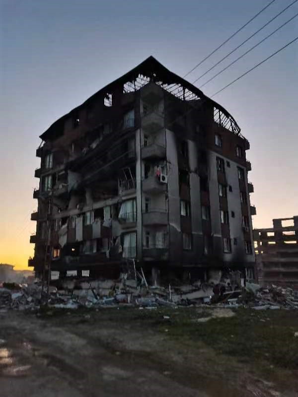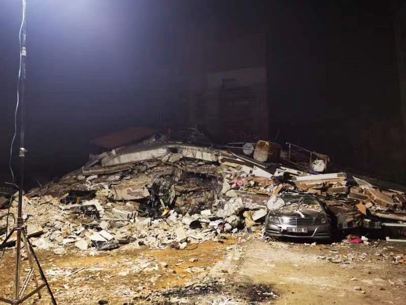 經過5小時車程,28日抵達土耳其受災嚴重的哈塔伊省安塔基亞市,按照任務要求,立即開展現場工作。