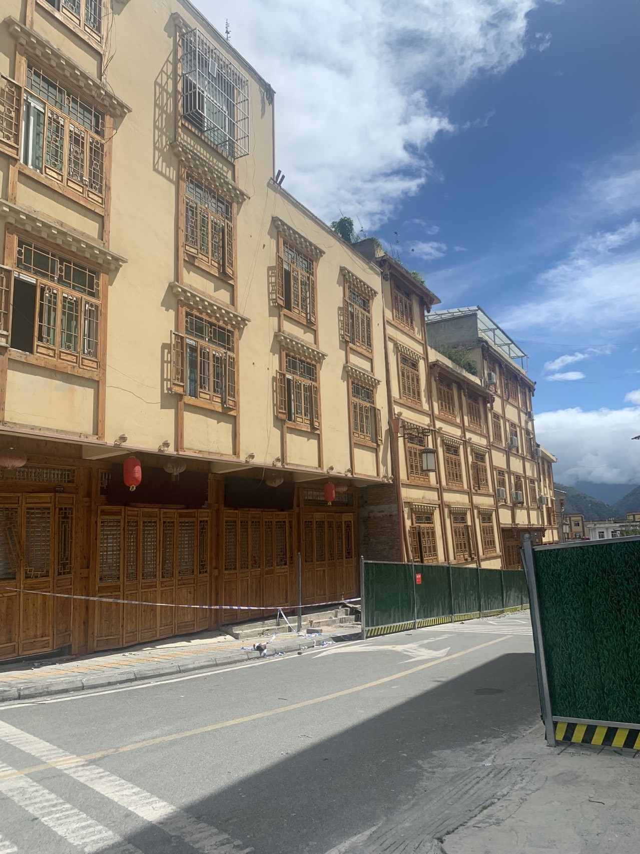 科考組還沿磨西鎮貢嘎大道、民宿風情街,逐棟考察了兩側房屋的震損情況,統計了全部考察房屋的結構類型、層數、破壞程度等信息,為震害分類統計及不同類型房屋的震損機理研究提供依據。沿街自建房屋大量存在結構形式混亂,結構受力形式不合理等問題。地形、場地對建筑破壞的影響明顯,靠近山頂、懸崖坡邊、填方地基上的建筑震害重。建議震后恢復重建要盡可能避開邊坡、填方地基等不利地段。