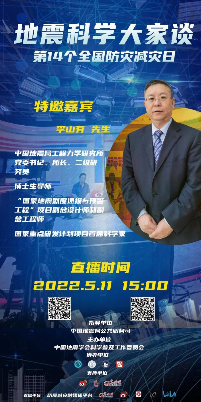 在線訪談。5月11日,我所黨委書記、所長李山有研究員和副所長張令心研究員受邀參加由中國地震學(xué)會科學(xué)普及工作委員會主辦的“地震科學(xué)大家談”特別活動。