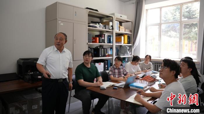 孫柏濤(左一)和學生討論課題。應急管理部供圖