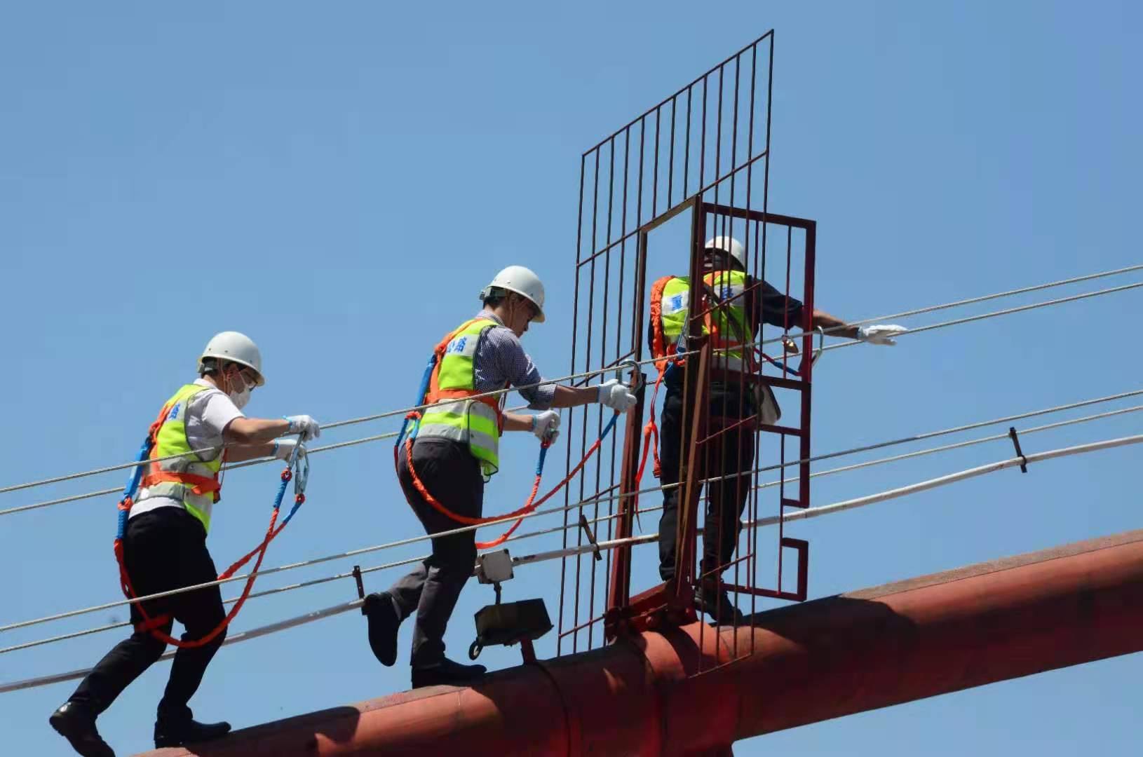 林旭川(中)攀登主纜考察橋梁服役狀態