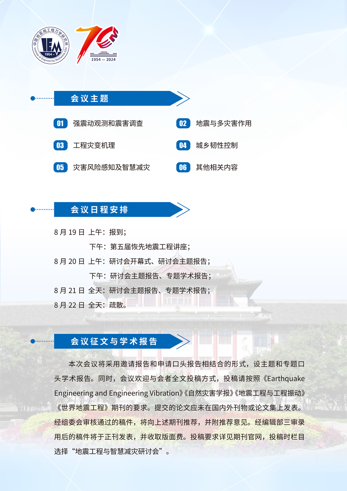地震工程與智慧減災(zāi)研討會(huì)暨第四屆韌性城鄉(xiāng)與防災(zāi)減災(zāi)論壇(一號(hào)通知)