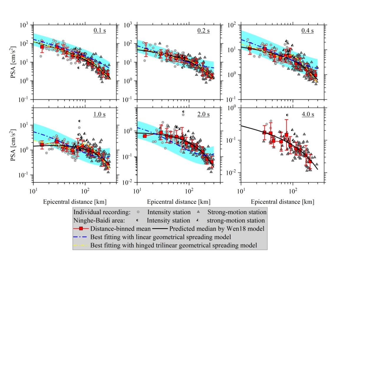 圖1 垂直分量PSA的距離衰減