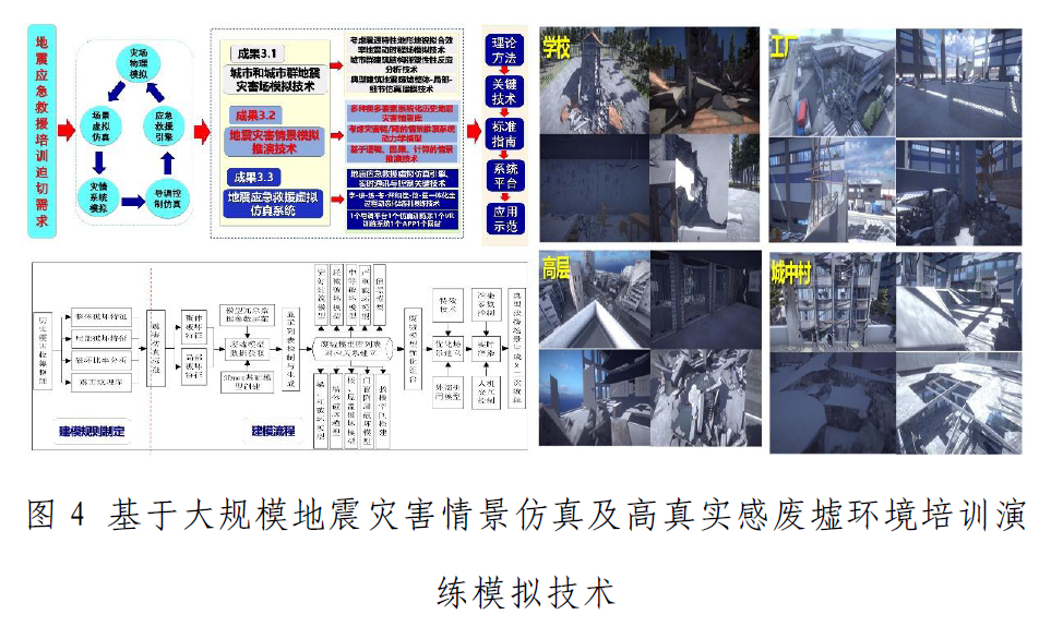 項目研發(fā)了考慮“學(xué)-研-練-考-評”和“搜-救-醫(yī)一體化”全過程動態(tài)化培訓(xùn)演練技術(shù)、地震應(yīng)急救援虛擬仿真引擎、實時通訊與控制等關(guān)鍵技術(shù),形成了單機(jī)、網(wǎng)絡(luò)和手機(jī)端一整套的大規(guī)模救援現(xiàn)場場景仿真與搜救培訓(xùn)演練模擬技術(shù)系統(tǒng),成果總體達(dá)到了國際先進(jìn)水平,在提升地震應(yīng)急指揮能力、地震應(yīng)急救援能力、地震災(zāi)害風(fēng)險認(rèn)知能力等方面具有廣泛的應(yīng)用前景。
