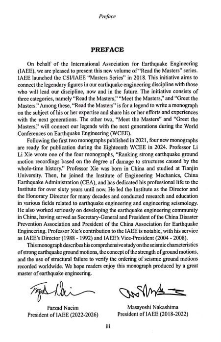 謝禮立以《強地震動按破壞強度的排序研究(Ranking strong earthquake ground motion recordings based on the degree of damage to structures caused by the whole time history)》為題發表了演說,IAEE前主席中島正愛教授親自主持。IAEE專門出資為謝禮立的此項研究成果以“閱讀大師”專著正式出版,并在此次大會上向來自全球100多個國家和地區的四千多名與會學者贈送。謝禮立及其團隊歷經20余年獲得此重大結果。